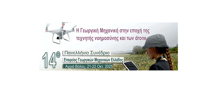 Το 14ο Πανελλήνιο Συνέδριο της ΕΓΜΕ με θέμα «Η Γεωργική Μηχανική στην εποχή της τεχνητής νοημοσύνης και των drone» θα ...